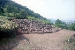 【2号古墳】急峻な尼飾山の南西尾根の緩斜面、標高395m付近の山腹に築造されており、水田域との比高差は約40mです。直径16.6mの円墳で一見積石塚を思わせる葺石で覆われています。円筒、朝顔形埴輪は墳丘全面から出土していますが、墳頂部墓壙付近からは土偶状・動物・水鳥・堅魚木のある家形・盾形などの形象埴輪も出土しています。円筒埴輪は、外面調整はタテハケの後Bd種ヨコハケで、窖窯焼成と考えられることから川西編年Ⅳ期に相当する資料です。