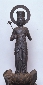 薬師如来像は衲衣・袈裟に裳をつけ、左手のひらに薬壺をのせる。地蔵菩薩像に比べると体が少しつまった感じだが、やはり木彫りの手法による像である。