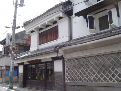 店舗は「大町道」と「うちわや小路」との交差点西南角地に建つ。間口3間半規模、東西に建つ片寄棟造の2階建店蔵の奥に南北に建つ2階建土蔵を繋げた形状で、明治5年頃に建てられた。入口を大きく採り、腰を瓦平積、軒を出桁(だしげた)造風とし、隣接の海鼠(なまこ)壁の土蔵と対照的な表構えとしている。